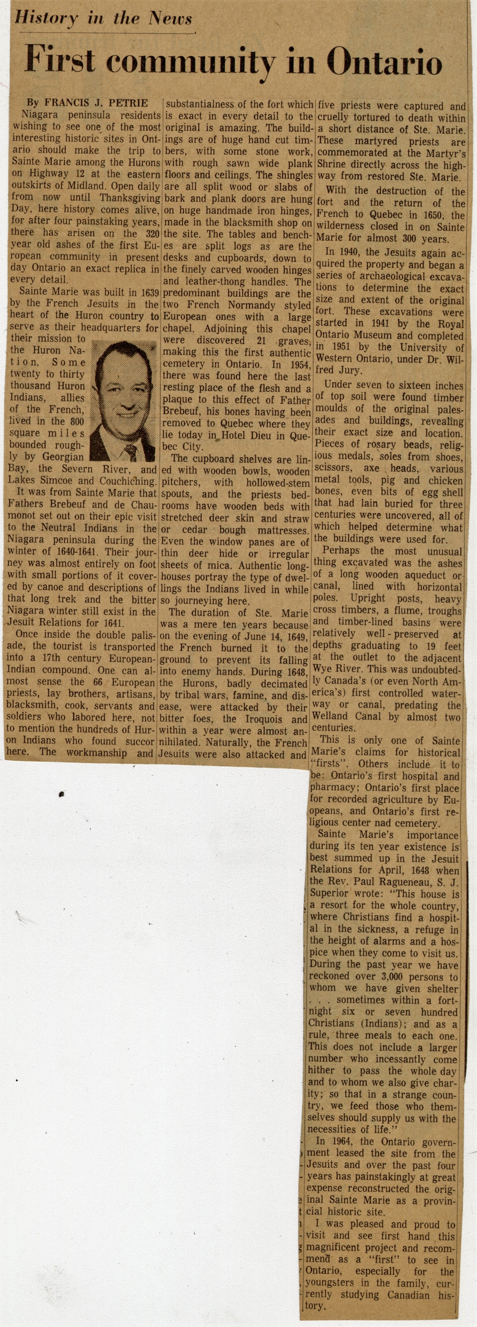 - History in the News : First community in Ontario