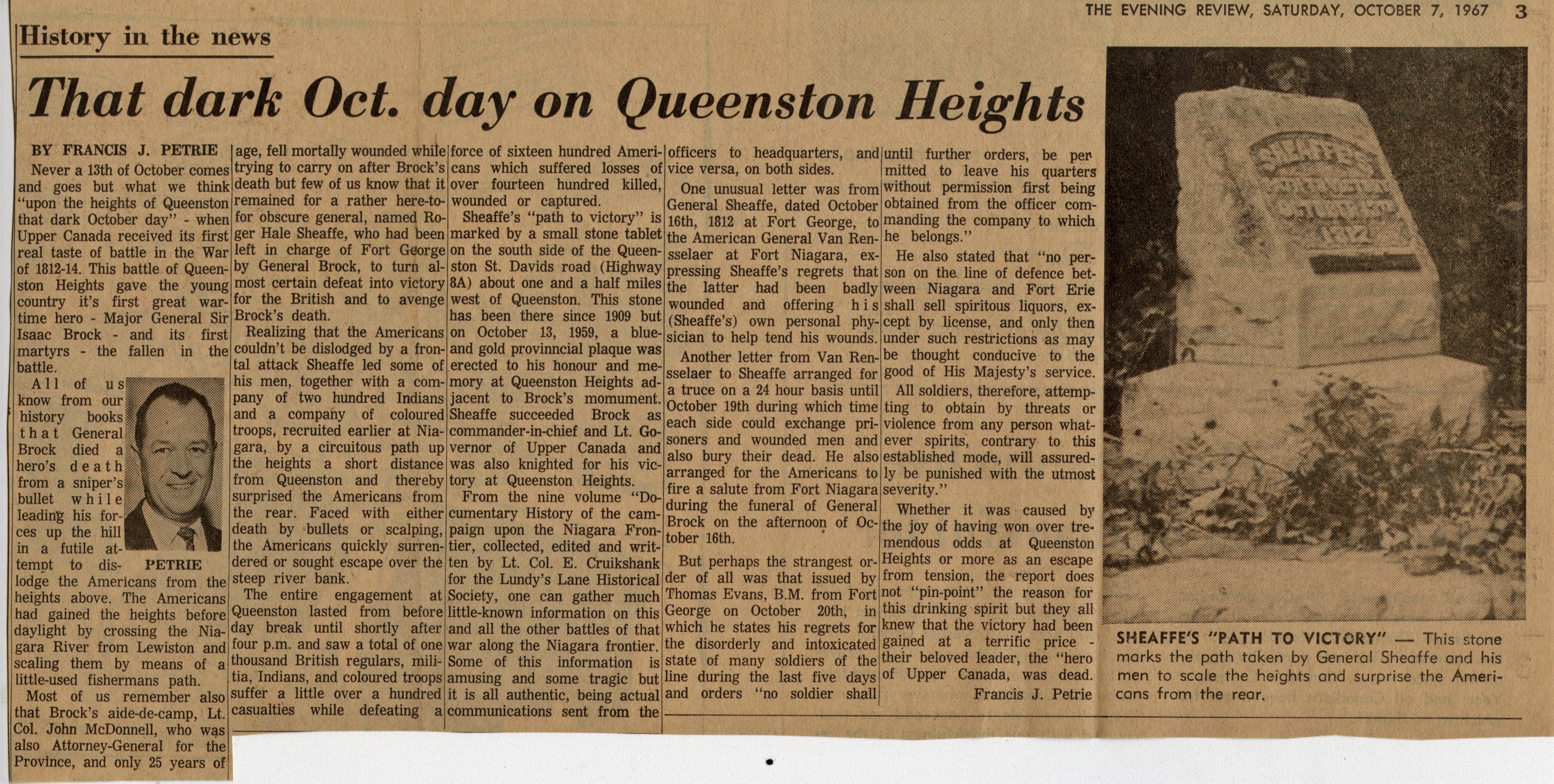 History in the news : That dark Oct. day on Queenston Heights