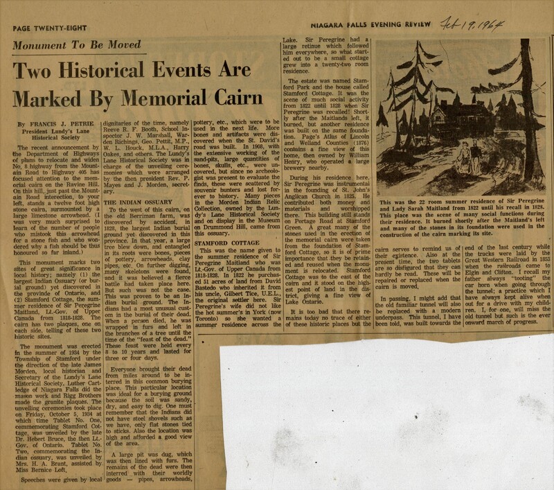 - Monument To Be Moved : Two Historical Events Are Marked By Memorial Cairn