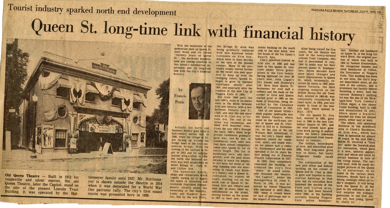 Tourist industry sparked north end development : Queen St. long-time link with financial history