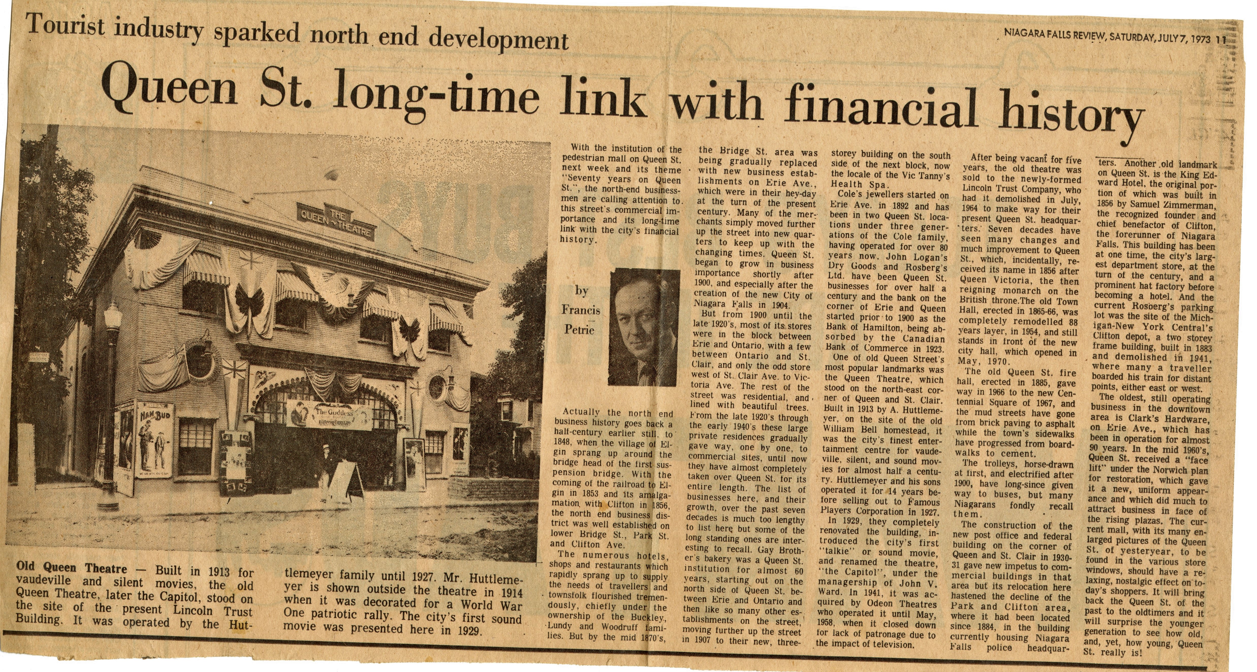- Tourist industry sparked north end development : Queen St. long-time link with financial history