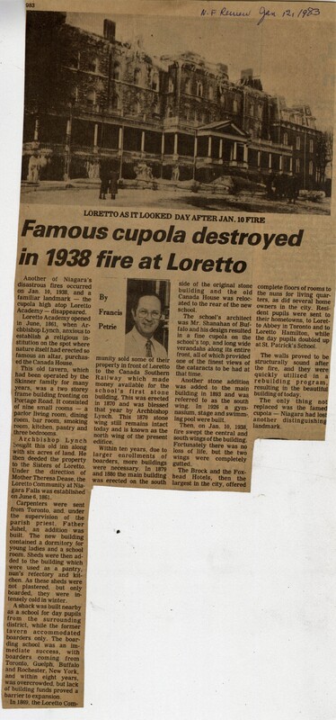 - Famous cupola destroyed in 1938 fire at Loretto