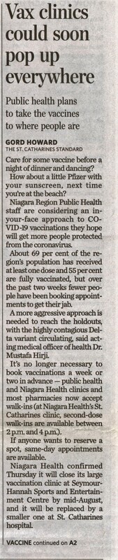 - Vax clinics could soon pop up everywhere : Public health plans to take the vaccines to where people are