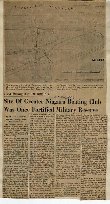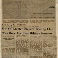 - Used During War of 1812-1814 : Site of Greater Niagara Boating Club Was Once Fortified Military Reserve