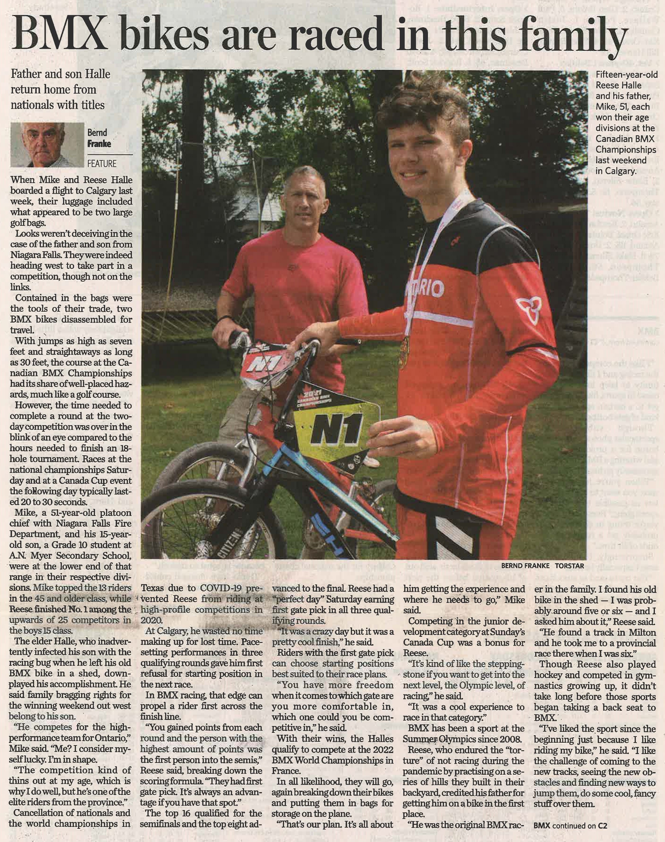 - BMX bikes are raced in this family : father and son Halle return home from nationals with titles.