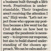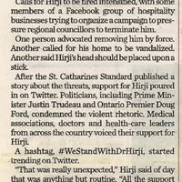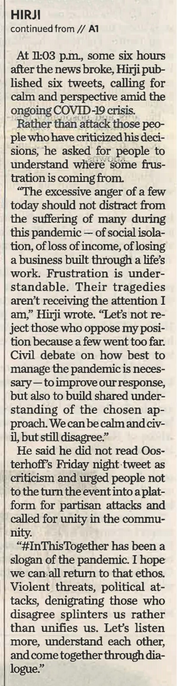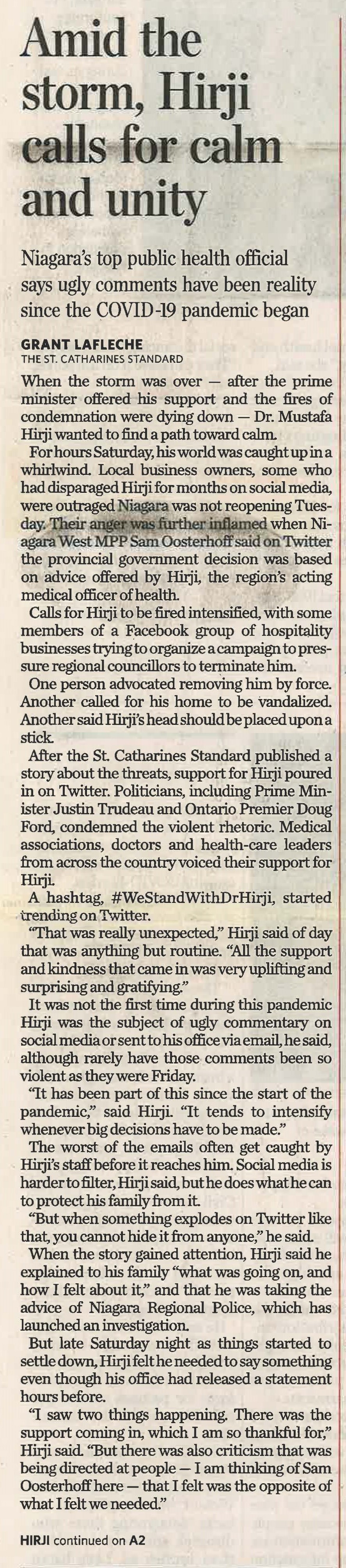 - Amid the storm, Hirji calls for calm and unity : Niagara's top public health official says ugly comments have been reality since the COVID-19 pandemic began