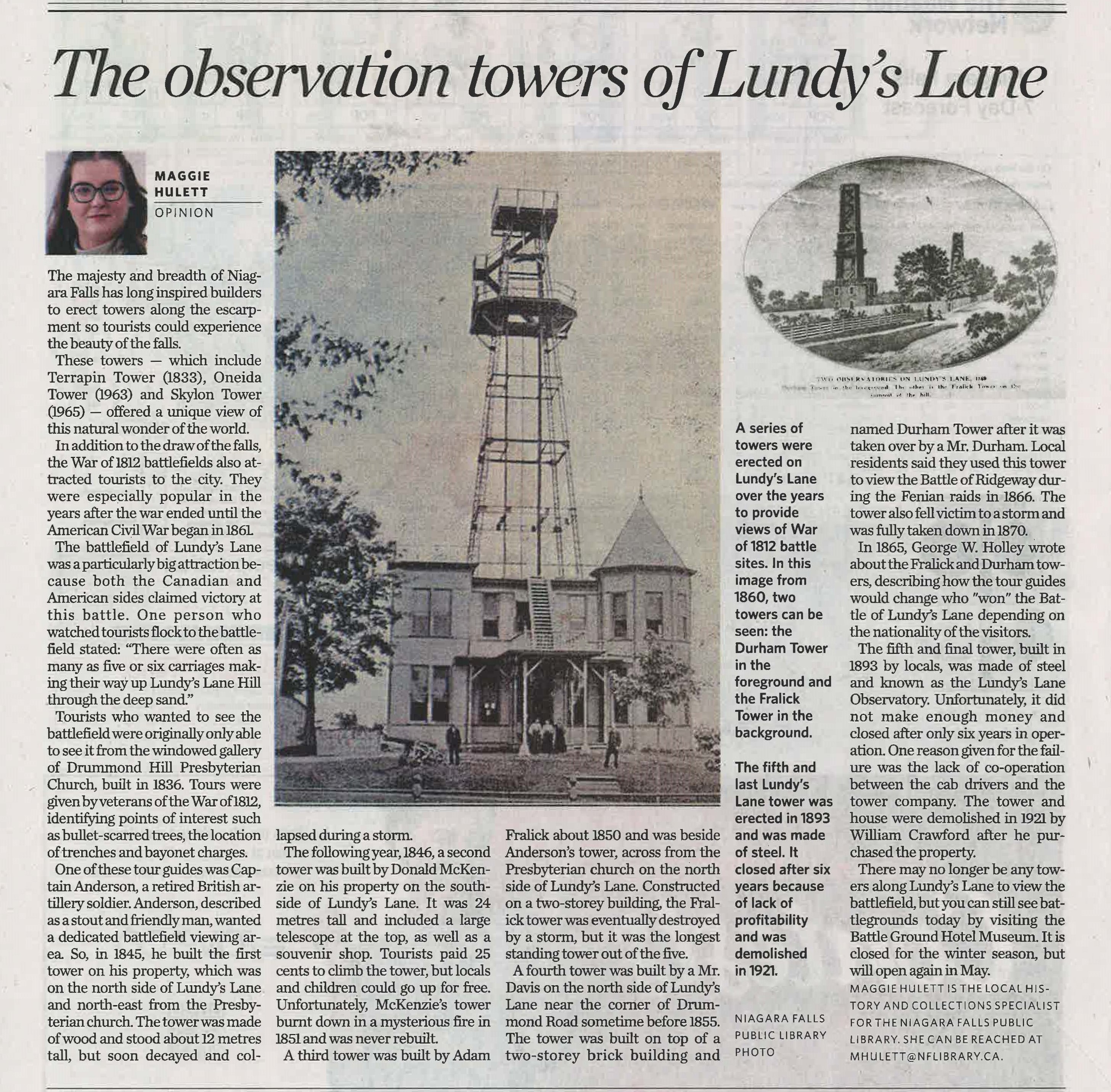 - The observation towers of Lundy's Lane : A series of structures offered tourists a view of War of 1812 battle sites