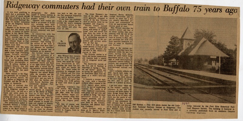 - Ridgeway commuters had their own train to Buffalo 75 years ago