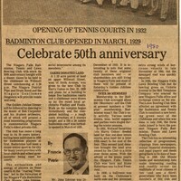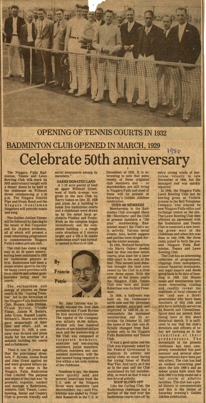 - Badminton Club Opened in March, 1929 : Celebrate 50th anniversary