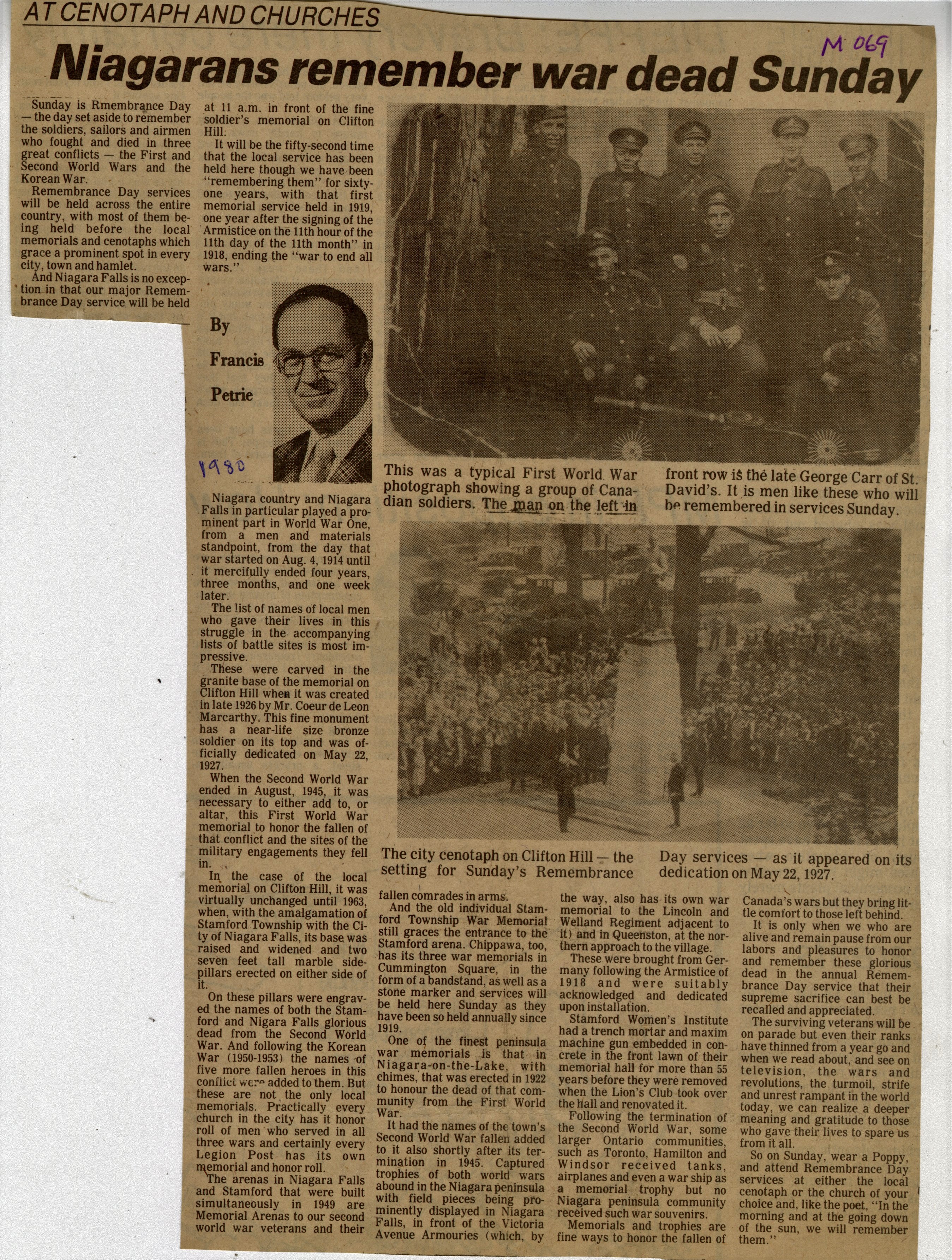 - At Cenotaph and Churches : Niagarans remember war dead Sunday