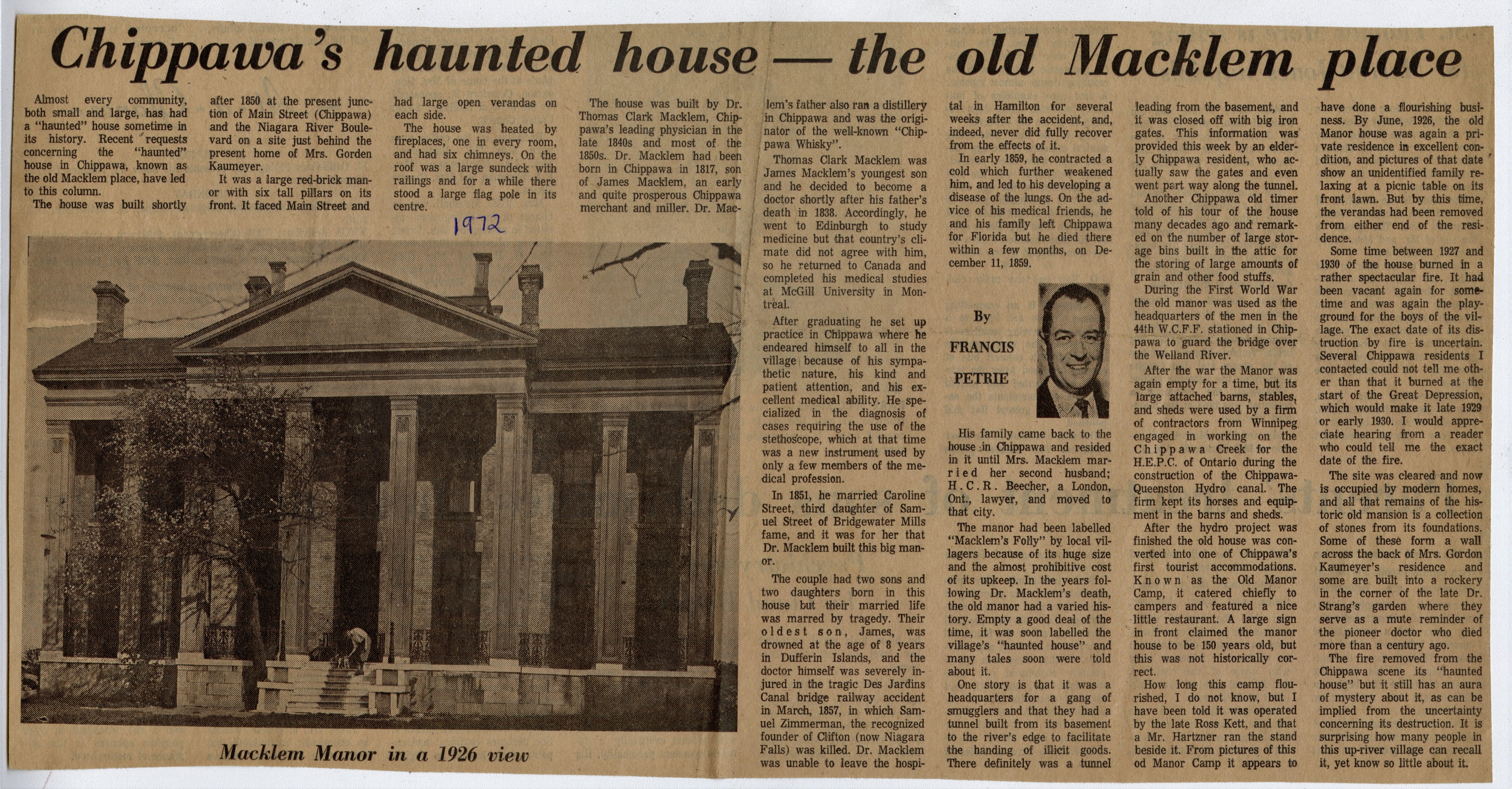 - Chippawa's haunted house --the old Macklem place