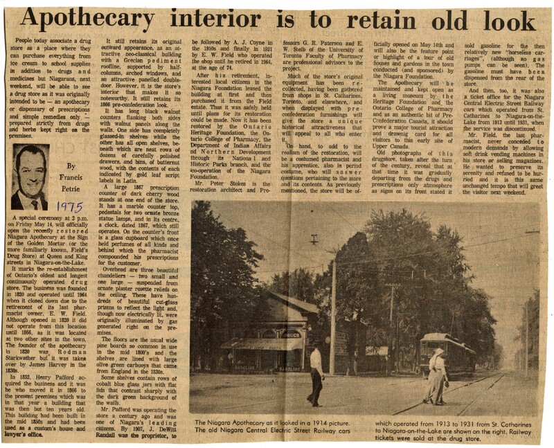 - Niagara Apothecary / Field's Drug Store / Field, E.W. / Starkwather, Rodman / Harvey, James / Heritage Foundation
