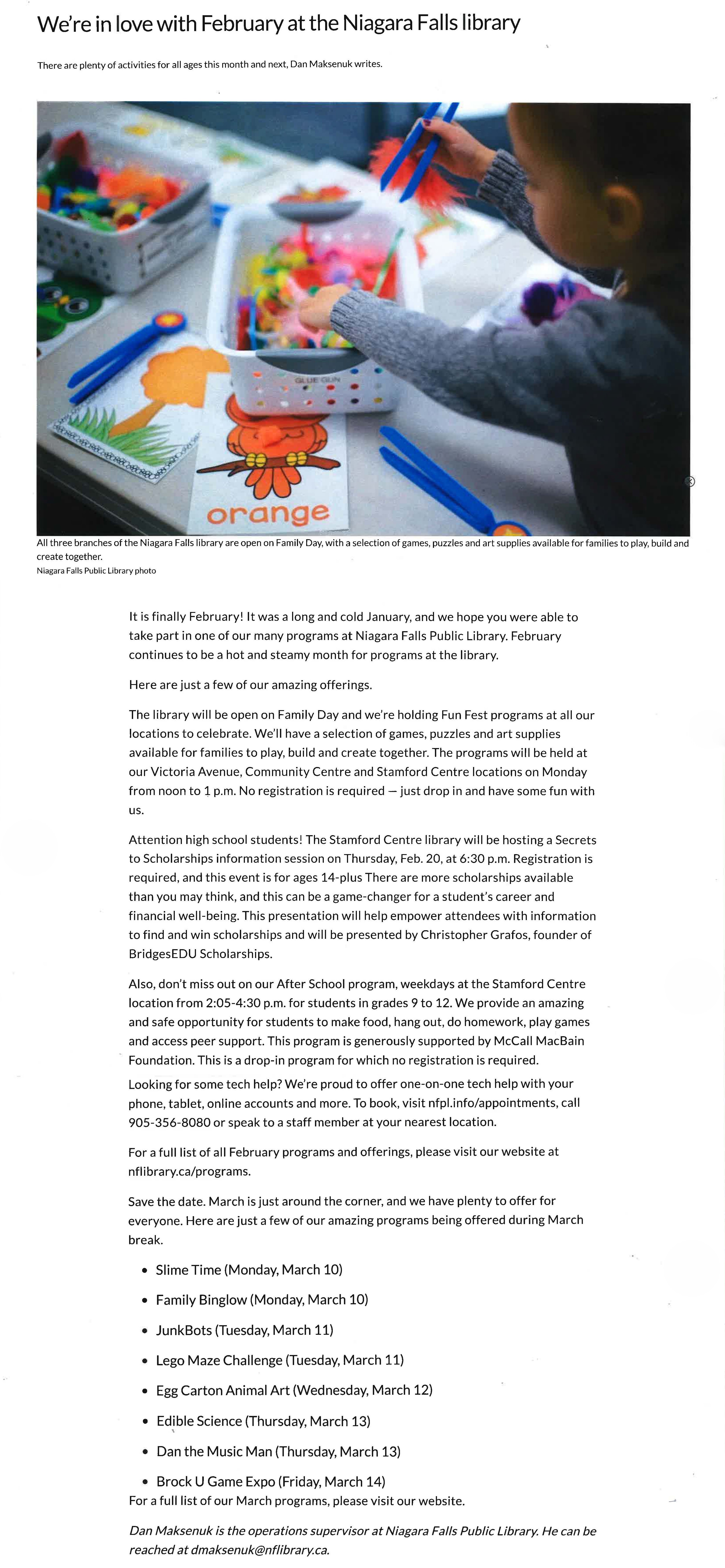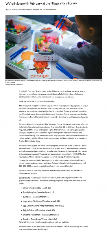 - We're in love with February at the Niagara Falls Library : There are plenty of activities for all ages this month and next