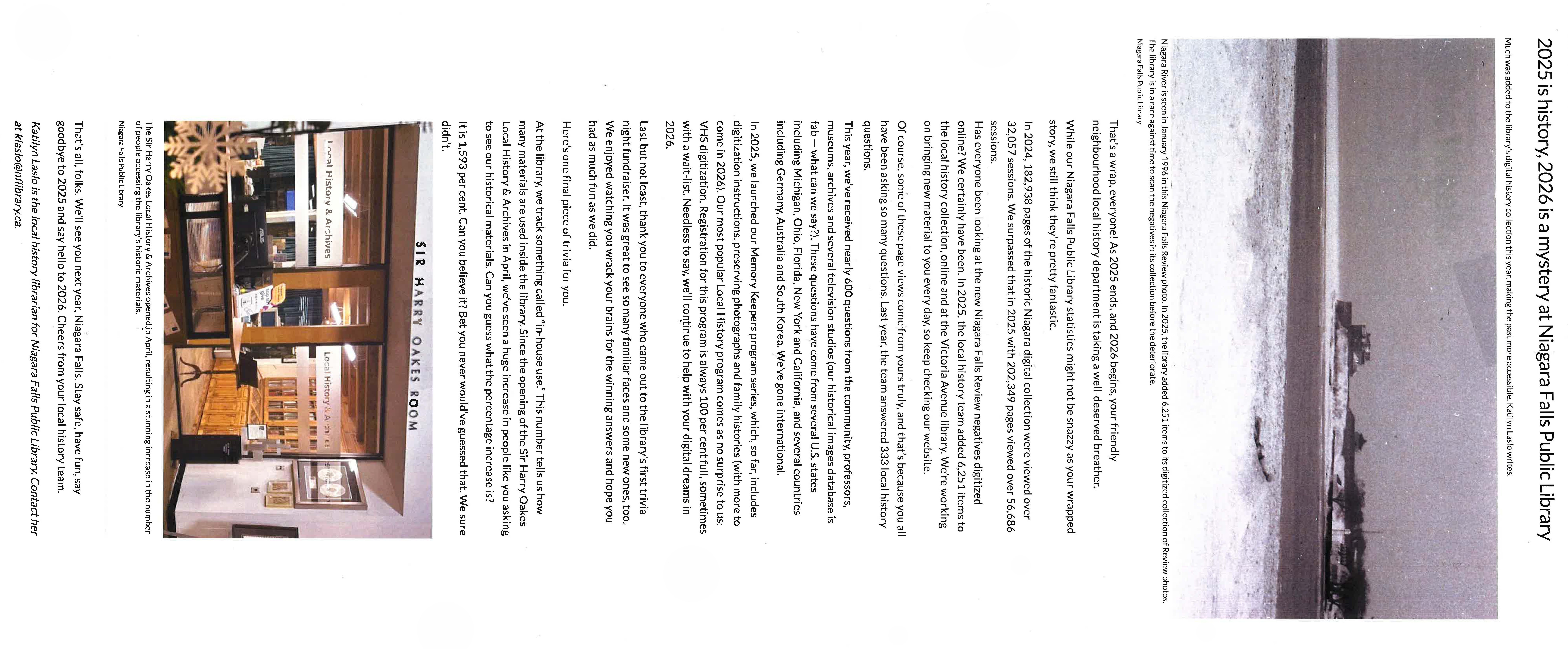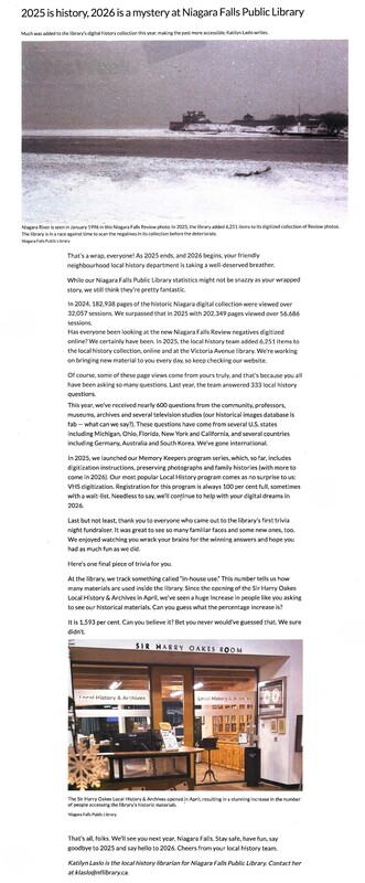 - 2025 is history, 2026 is a mystery at Niagara Falls Public Library : Much as added to the library's digital history collection this year, making the past more accessible