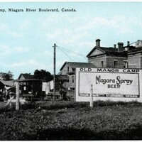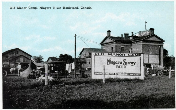 Advertising billboard in foreground is for Niagara Spray Beer established 1834. Sign is Taylor & Bate Limited of St Catharine's Ontario.
