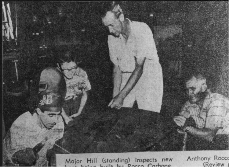 - Major Hill standing inspects new boat being built by Rocco Carbone ...