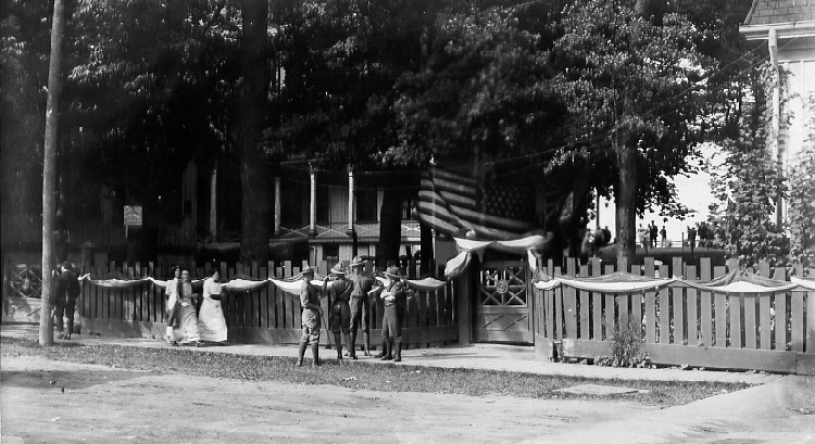 - en-CA The sign on the left hand side of the photograph reads " Notice. Excursionists are not admitted to Grounds