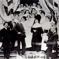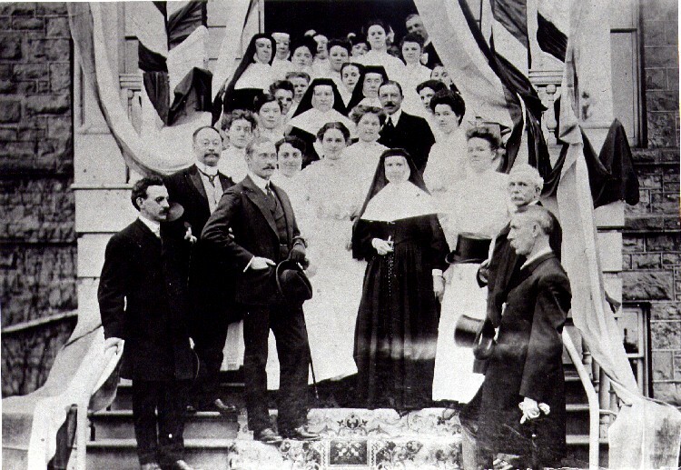 - en-CA Duke of Connaught centre holding hat; Alderman Joseph Hague far left; Sir Henry Pellett (builder of Casa Loma) 2nd left; Mother Febronia nun in foreground; Mayor George Hanan right lower; Niagara Falls New York Mayor O.W. Cutler behind Mayor Hanan ;