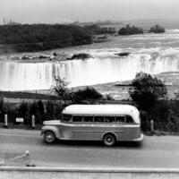 - Falls View Consolidated school bus in front of Horseshoe Falls