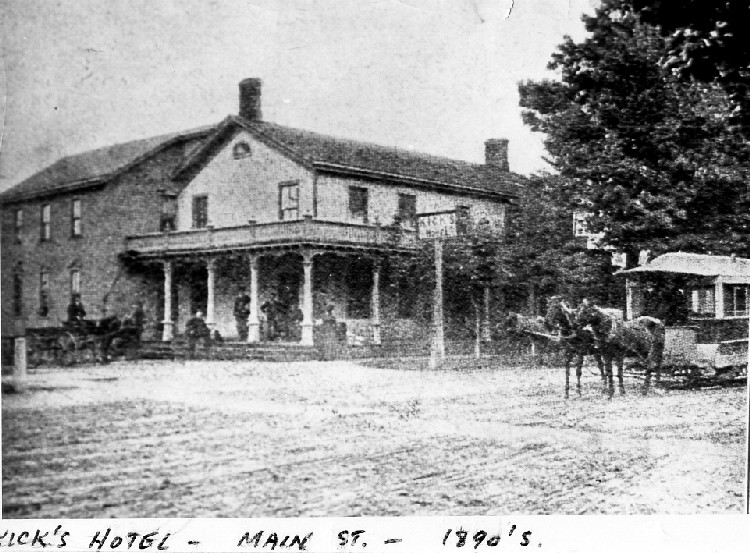 Kick's Hotel Main Street Niagara Falls, horse drawn streetcar to right