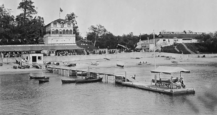 Crystal Beach Scene lookin towards the amusement park, Dexter's Roller Rink and the Great White Way