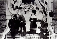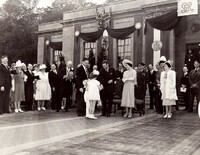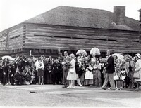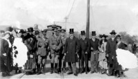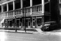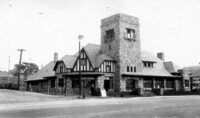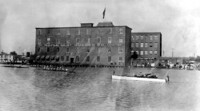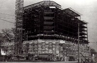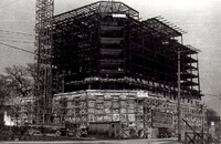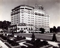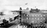 sign in front of building reads The General Brock - 260 rooms with baths - absolutely fireproof - open early summer 1929 - temporary office Erie Ave.- Phone 2990