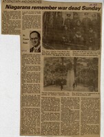 At Cenotaph and Churches : Niagarans remember war dead Sunday Carr, George / Remembrance Day / Soldiers Memorial / Clifton Hill / names engraved / Korean War -