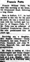 born 1831; 1st wife: Jane I. Hooper (1860); 2nd wife: Mary A. Hooper (sister of Jane; 1864); father of Angus (by 1st wife Jane), Mary I., Alma L., Georgw W., Augusta A., Edith M., Annie E., Thursa and Cora A. (all eight by 2nd wife Mary); Springfield, ON; son of Elizabeth (nee Cascaden) and Francis S. Moore; brother of Jemima J., Ann I. (m. Firby), William A., John S., Francis E., Sarah E. (m. Westover), Arthur W., Sidney A. and Alfred L.;