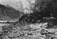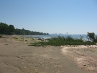 Pebbly Beach at the North end of the Niagara Glen. There is low water as a result of water diversion for electric power. The last major diversion occured in 1962, when the Robert Moses Power Generating Station went into service. This area is now covered with brush and trees