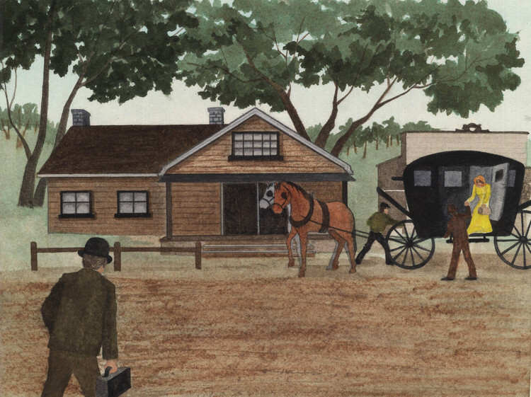 A stage coach stop on Portage Road ca 1800s