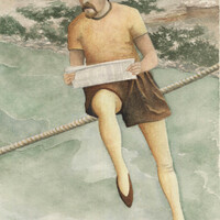 - Blondin sitting on a tight rope strung over the Niagara Gorge and Lower Niagara River ;