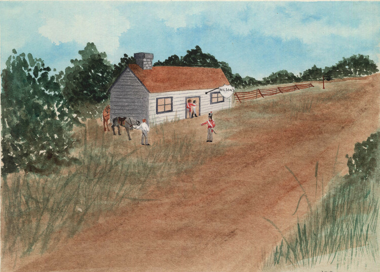 - British Officers leaving Their Command Post at Wilson's Tavern as United States Army Approaches July 25 1814