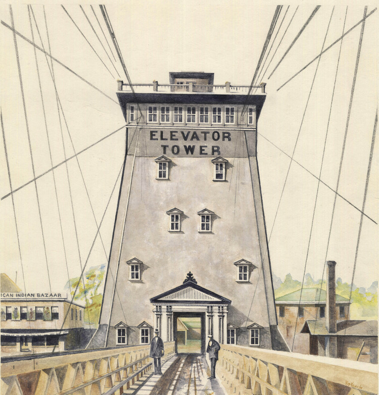 Canadian Tower from the Bridge Side - [New Falls View Upper Suspension Bridge - Elevator Tower]