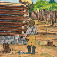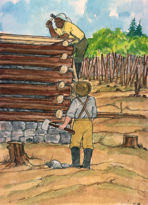 Thomas McMicking Building His Log House With The Help Of His Black Slave