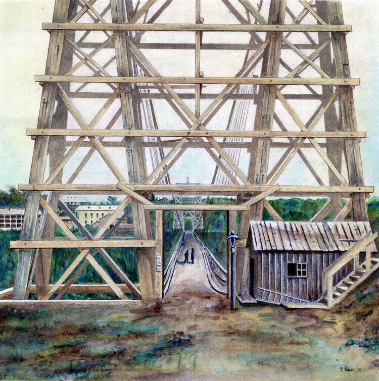 - en-CA Niagara Falls Heritage Foundation Government of Canada Local Initiatives Grant BK 4701-1 1975 - 1976 ; Artistic recreation from sterograph view no. 8 by J. J. Reilly in the Earl W Brydges Public Library, Niagara Falls, NY ;
