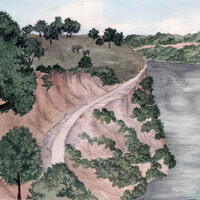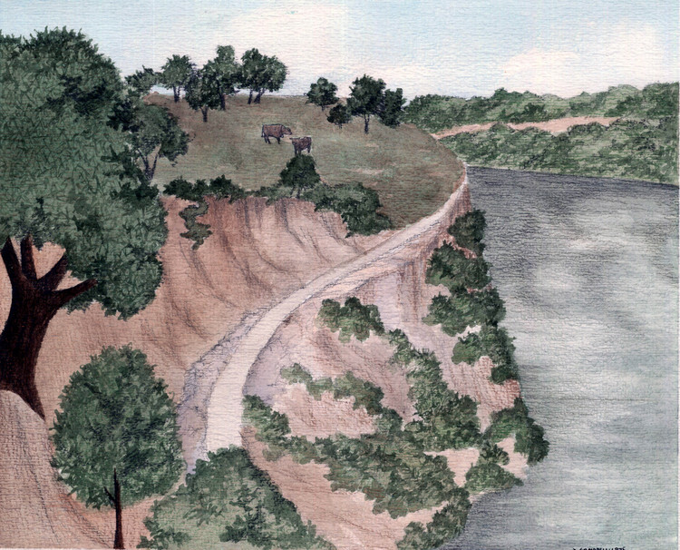 - en-CA Niagara Falls Heritage Foundation Government of Canada Local Initiatives Grant AK 2403-9 1974 - 1975 ; Artistic recreation based on the orignal by James Cockburn at the Royal Ontario Museum Toronto ; Research by George Seibel ; "The road built by Clark and Street in 1825 cost $5,000 and was paved with cobble stones. It had a hairpin bend two thirds of the way down. This bend remains today much as it was when built, the stone retaining wall is there but the cobble stones have been covered over iwth blacktop" excerpt from "Niagara Falls Canada : a History" published 1967 ;