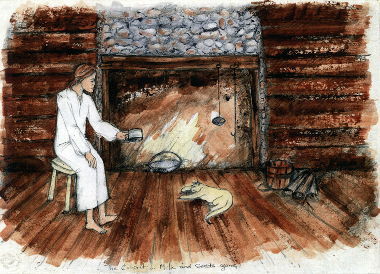 - Thomas McMicking awakes to find that the cat has consumed both the milk and the apple seeds, the planting of apple seeds is delayed for one year ;