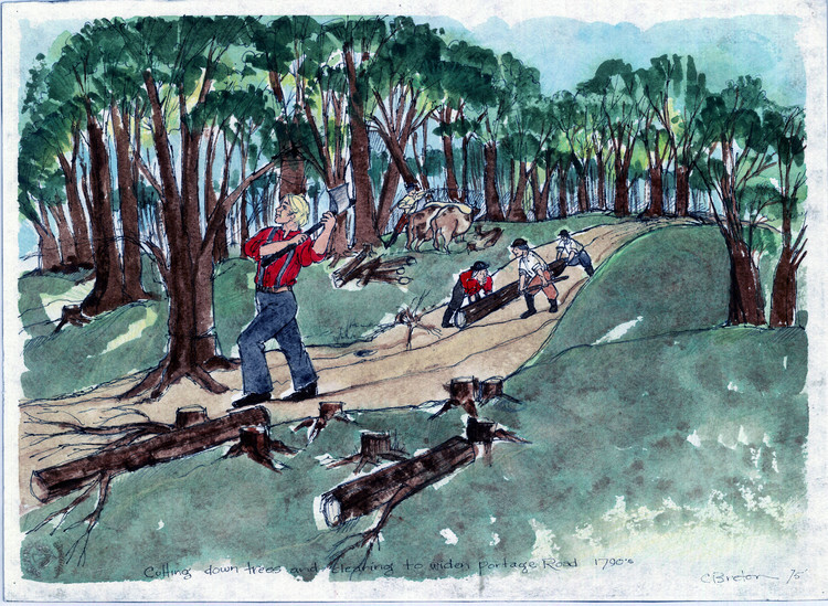- en-CA Niagara Falls Heritage Foundation Government of Canada Local Initiatives Grant AK 2403-9 1974 - 1975 ; research by George Seibel ; When the portage was moved to the west side of the River, it was necessary to widen the road that had so far been followed by all the traffic between the "new landing" and the Chippawa, a route winding through the settlements and following the most suitable ground. On March 31st 1790, the first Commissioner for Roads for Nassau (as the area was then called) were appointed. They were John McNabb, Andrew Butler, Jacob Tenbroek, Charles Pettit, Robert Lotteridge, Robert Nelles, Gilbert Tice, John Warren, Elijah Phelps, Jacob Ball Jr., and John Powell - excerpted from The Niagara Portage Road by Ernest W Green ;