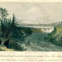 - The great international Railway Suspension Bridge over the Niagara River in full view of the Falls connecting the United States & Canada, the New York Central & Great Western Railways