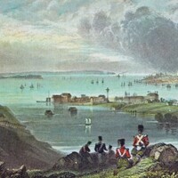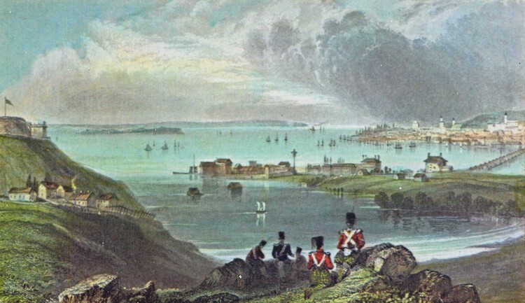 - British soldiers in Kingston overlooking the Naval Dockyards ; Fort Henry (left) ;