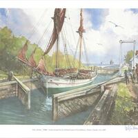 - Lake schooner "YORK" locking through the first Welland Canal at Port Dalhousie, circa 1840.