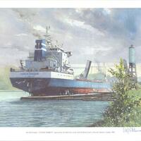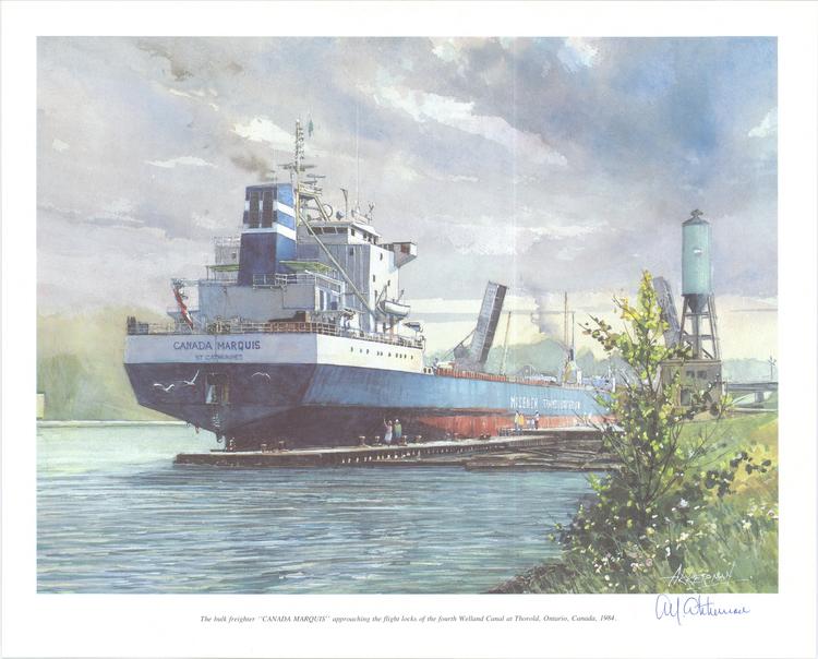 - The bulk freighter "CANADA MARQUIS" approaching the flight locks of the fourth Welland Canal at Thorold, 1984.