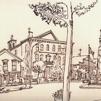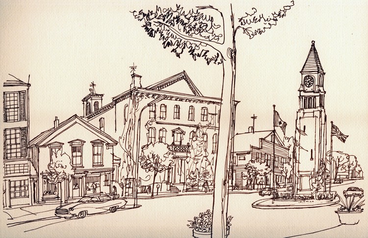 - Memorial Clock Tower centre right and the Courthouse Theatre building centre ; The Niagara-on-the-Lake Public Library was housed in the basement of the old courthouse ;