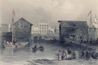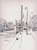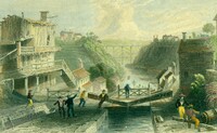 "CANADA MARQUIS," a bulk freighter built in 1983 in Glasgow, Scotland for Misener Transportation of St. Catharines, Ontario, has a cargo capacity of about 25,000 tons. The huge carrier, entering Lock 4, is 730 feet long and squared off at the stern to maximize the amount of ship that can fit into the 80-foot by 800-foot long locks. In fact, the canal is officially named the Welland Ship Canal because it can handle ocean-going ships. The surge tank in the background is part of the St. Lawrence Seaway Welland Canal hydro generating station.