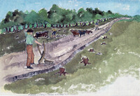 Farmer with oxen on Portage Road Niagara Falls Heritage Foundation Government of Canada Local Initiatives Grant AK 2403-9 1974 - 1975 ; research by George Seibel ; -