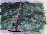 United Empire Loyalists leaving the United States for Canada by ship Niagara Falls Heritage Foundation Government of Canada Local Initiatives Grant AK 2403-9 1974 - 1975 ; research by George Seibel ; "you are hereby notified to depart .... as you are considered an enemy to your country, therefore take your all and your family and follow your friends to that country that the King your master has provided for those of your character..." Those who were loyal to the King packed their belongings in wagons and set out with their families, the first loyalists left the United States in 1776. It was 1781 before settlers were to cross the Niagara and settle the "land on the mountain" as the area above the escarpment was called - reference Mark of Honor by Hazel C Matthews ; -