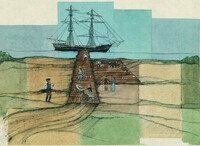 Sailing Ship in Chippawa Creek [First Welland Canal] Niagara Falls Heritage Foundation Government of Canada Local Initiatives Grant CK 1071-3 1977 ; Research by George Seibel ; -
