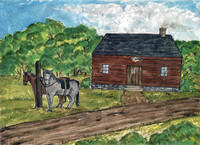 Stage Coach Stopping To Rest Passengers At The Whirlpool House, Portage Road Niagara Falls Heritage Foundation Government of Canada Local Initiatives Grant AK 2403-9 1974 - 1975 ; Research by George Seibel ;
