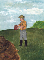 Early pioneer farmer seeding Niagara Falls Heritage Foundation Government of Canada Local Initiatives Grant AK 2403-9 1974 - 1975 ; artistic recreation from a sketch by C. W. Jefferys in Library and Archives Canada ; -