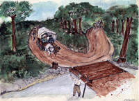 Farmers hauling goods over Portage Road under contract Oxen hauling wagons ; -